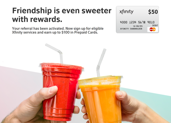 Use our friend referral link to sign up for Xfinity Internet or Mobile and receive a Prepaid Virtual MasterCard worth $50 per service added! This offer is available for a limited time and subject to change at any moment, so sign up quickly!